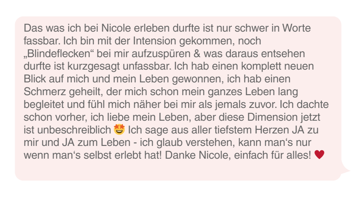 Du begegnest deiner Mutter oder deinem Vater und fühlst keine heimliche Wut oder Schuld mehr, sondern Klarheit und Frieden.